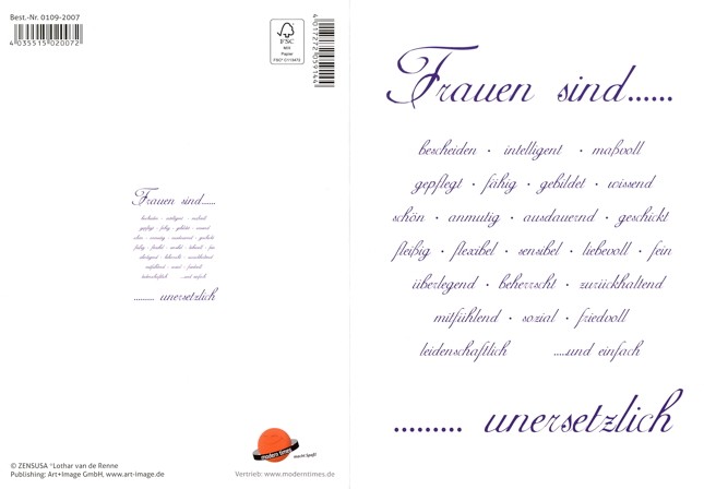Best.Nr. 0109-2007 - Doppelkarte inkl. violettem Briefumschlag -