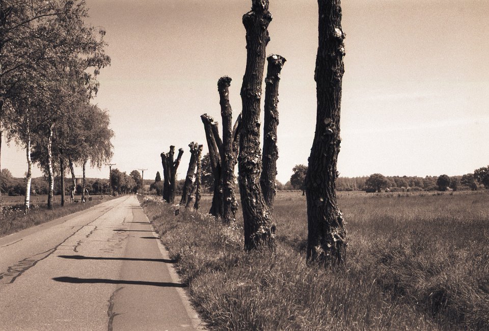 1 Auf dem Feldweg erschossen Pentax LX, SMC M 2.8/40; Gelbfilter, Fuji Acros @50 |