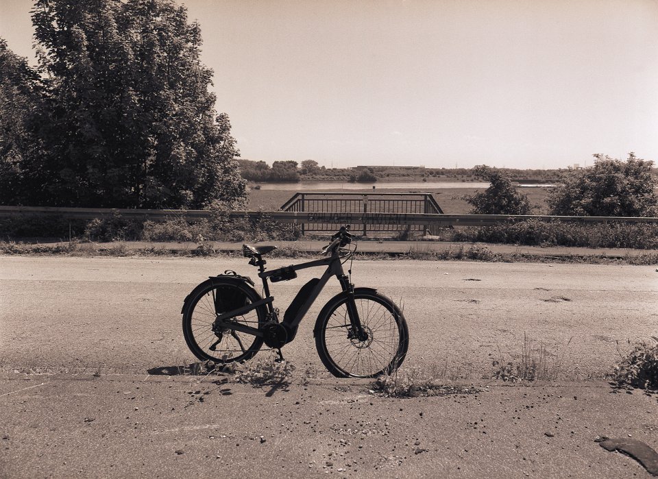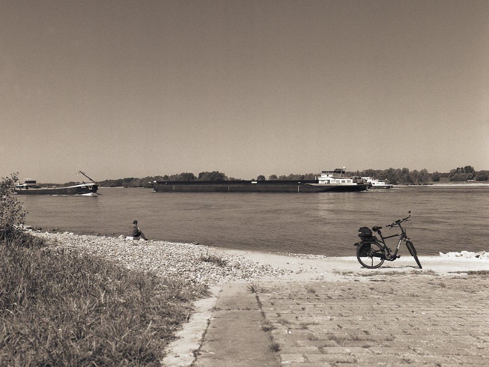 7 Der Radfahrer am Rheinufer Pentax 645N, SMC A 2.8/45, Gelbfilter, Fuji Acros @50 |