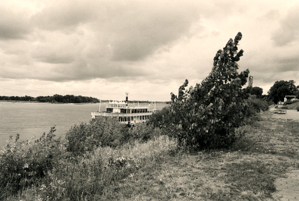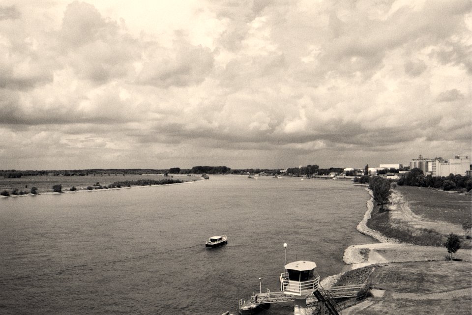 16 Blick von der Rheinbrücke Wesel Pentax Super A, SMC FA 1.8/31 AL Limited. Gelbfilter, Bergger Pancro400@250 |