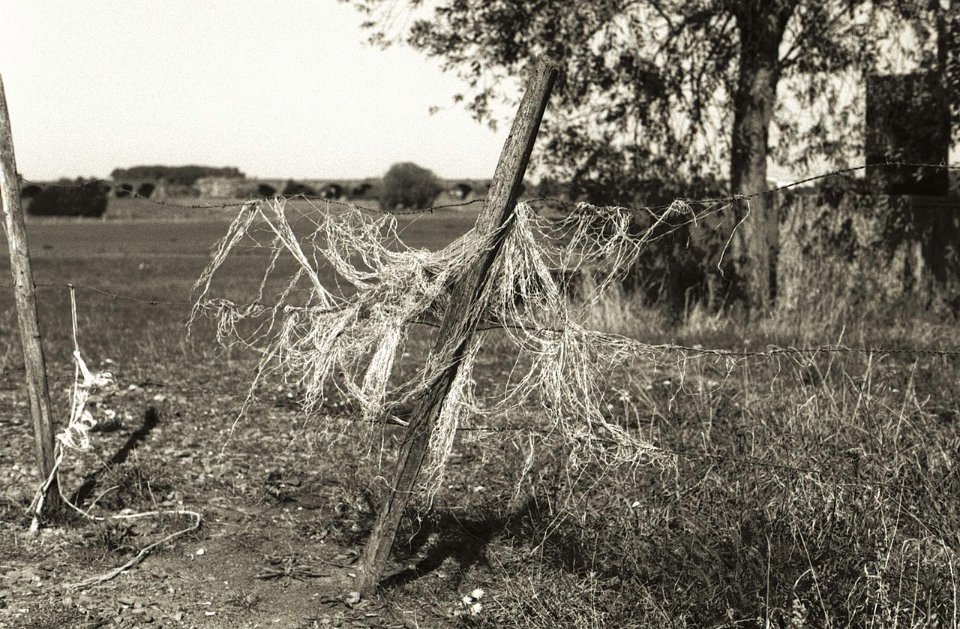 5 Kunststoffgespinst am Weidezaun Pentax K2, SMC 1.4/50, Ilford Pan 100 - 21.09.2020 - |