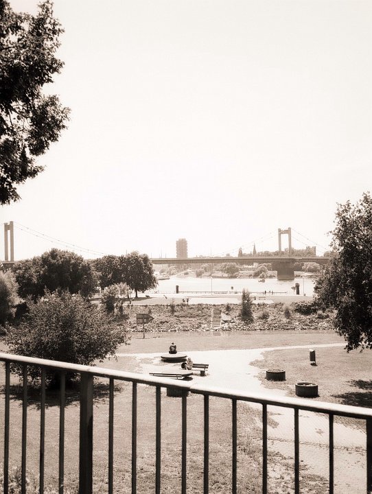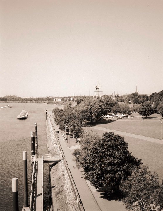 7 Blick auf Rhein und Mühlenweide Duisburg Ruhrort Fuji GS645S professional, Rollei RPX100@64 |
