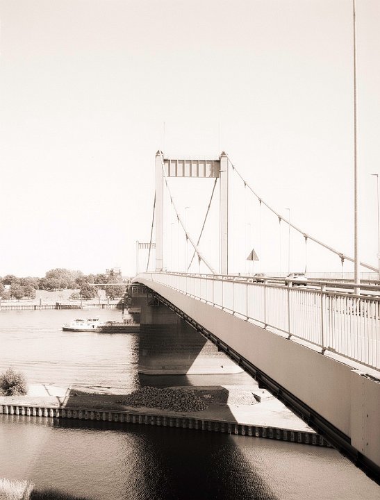 6 Blick zur Duisburg Homberger Rheinbrücke Fuji GS645S professional, Rollei RPX100@64 |