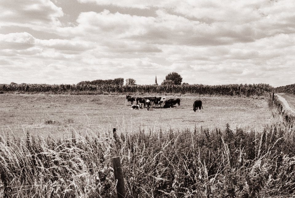 16 Kühe, Felder, Kirche Pentax MZ-S, SMC FA 1.9/43 Limited, Gelbfilter, Adox CHS 100 II - 06.07.2022 - |