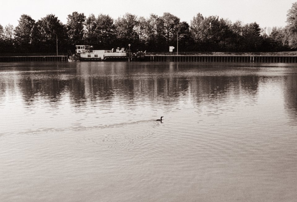 3 Einzelner Kormoran der im Kanal fischt Pentax MZ-S, SMC FA 1.9/43 Limited, Gelbfilter, Adox CHS 100 II - 27.04.2022 -