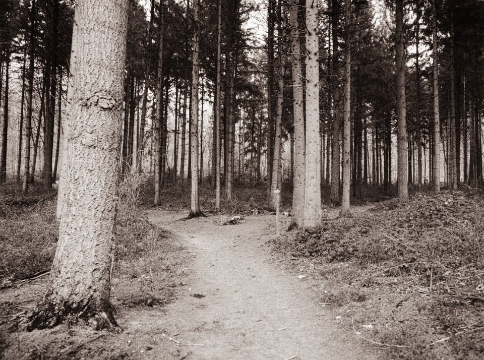 10 Waldweg zwischen Fichten Pentax 645N, SMC FA 2.8/45, Gelbfilter, FOMA soft Retropan 320 - 05.01.2023 - |