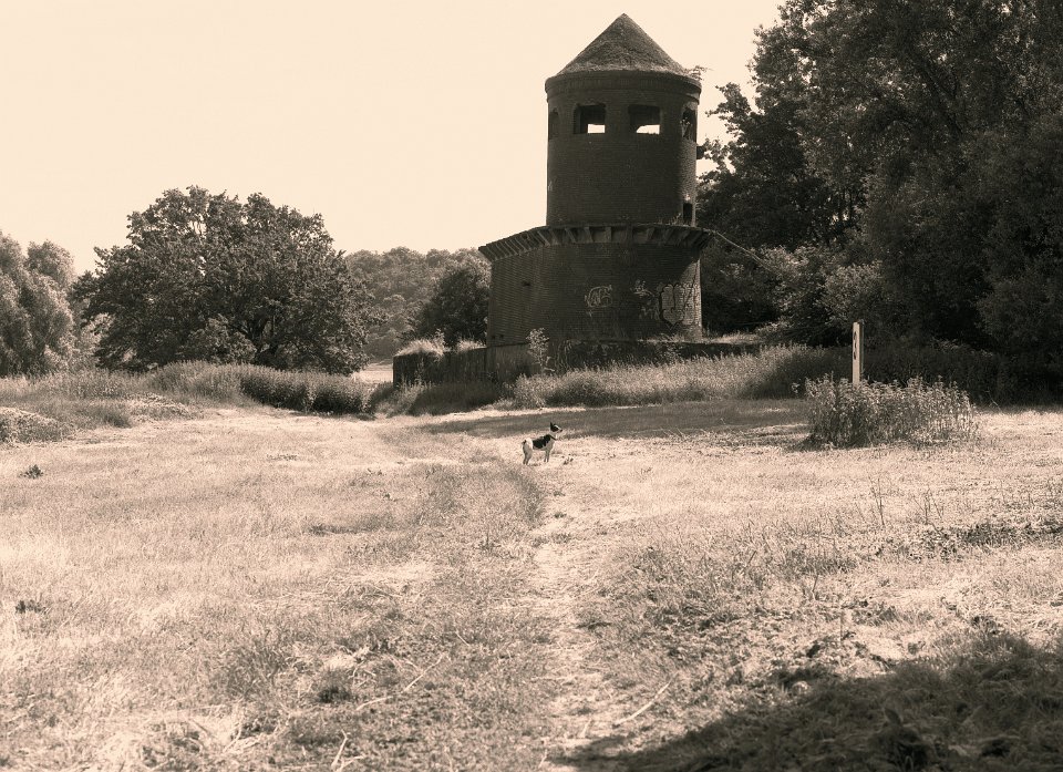 8 Der Hund am Mäuseturm Pentax 645N, SMC 2.8/75, Gelbfilter, Kentmere Pan 100 - 12.06.2023 - |
