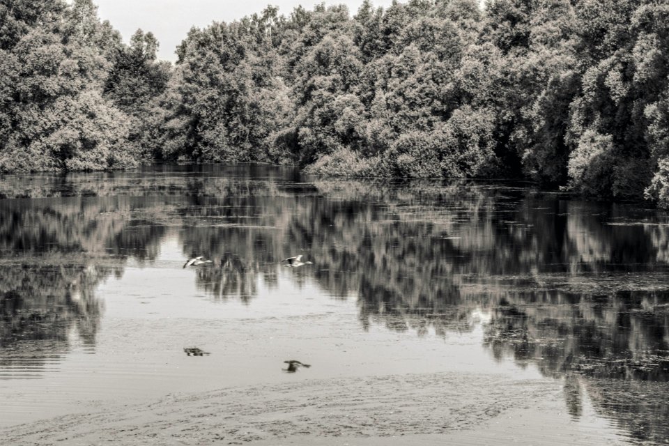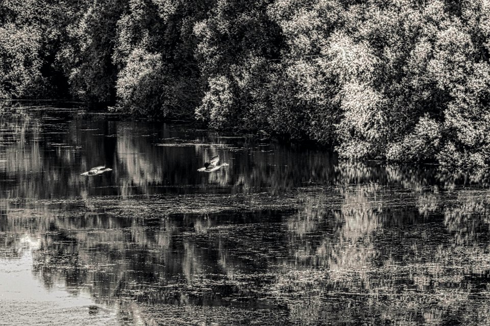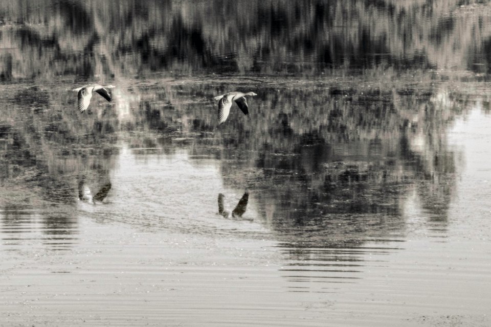 10 Wildgänse, Flug über den kleinen See #3 PENTAX K-3 Mark III Monochrome, SMC PENTAX-FA 1.8/31 Limited -29.06.2024 - |
