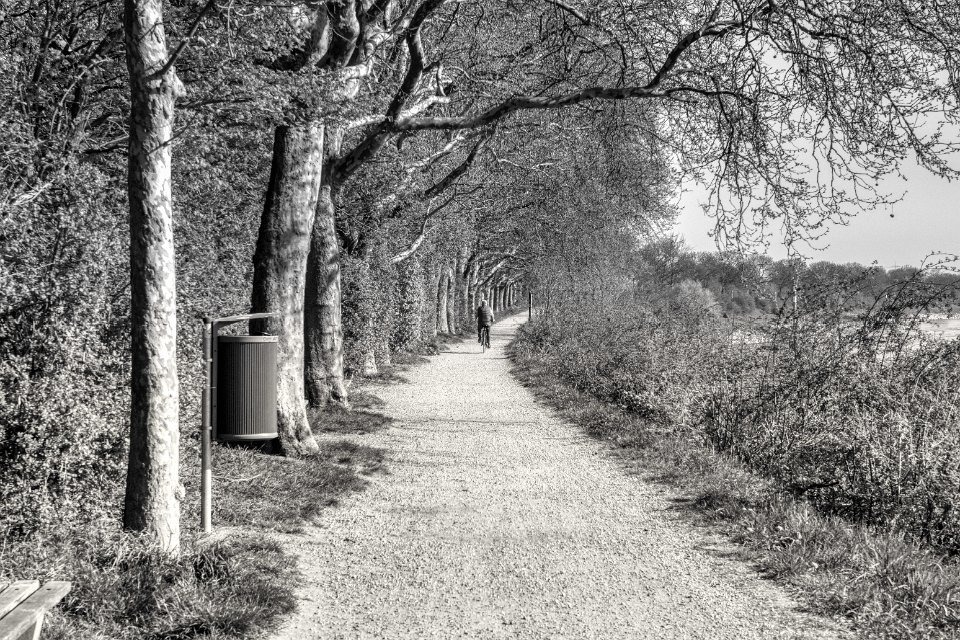 3 Rheinweg mit Radfahrer PENTAX K-3 Mark III Monochrome, HD PENTAX - DA* 2.8/16-50 ED PLM AW - 04.04.2025 - |
