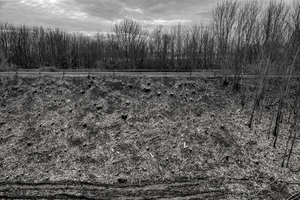 1 Abholzung an der Rheinbrücke Wesel PENTAX K-3 Mark III Monochrome, HD PENTAX - DA* 2.8/16-50 ED PLM AW - 21.02.2025 -