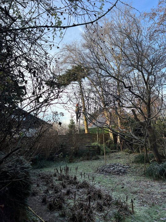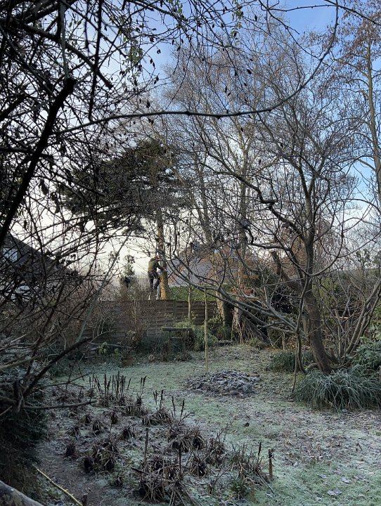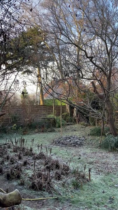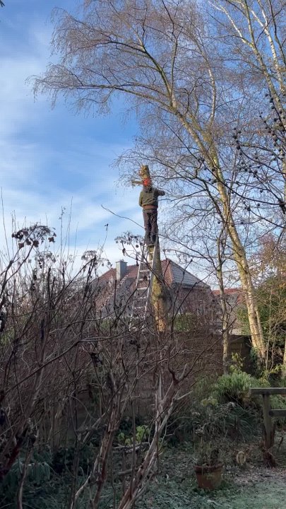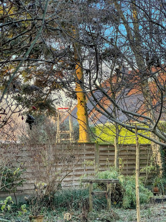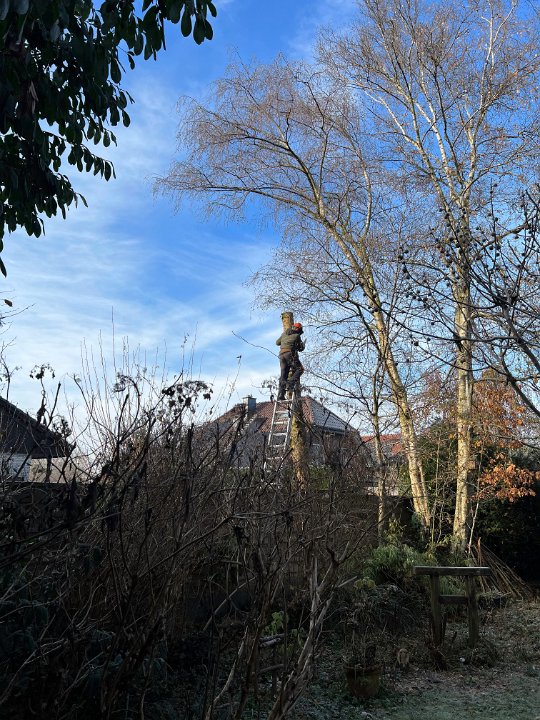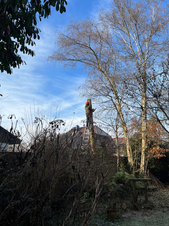 Der letzte größere Baum im Garten der Nachbarn wird gefällt