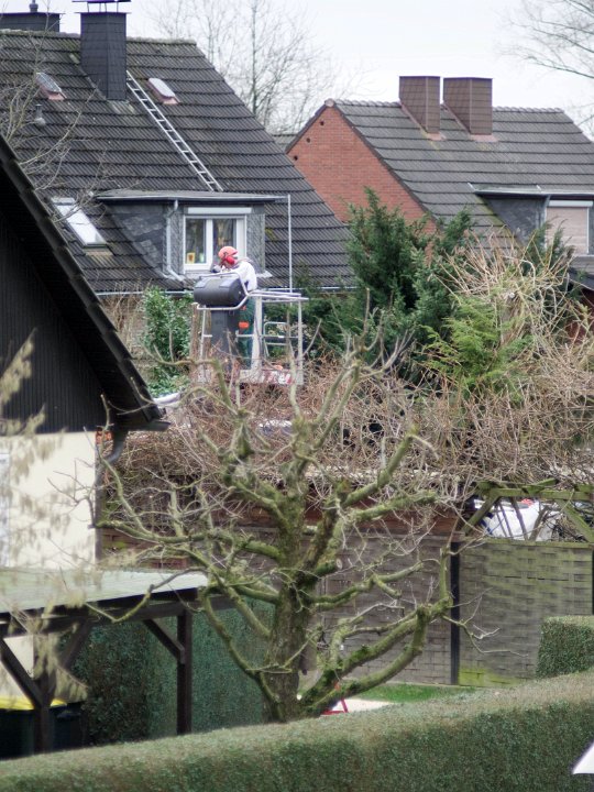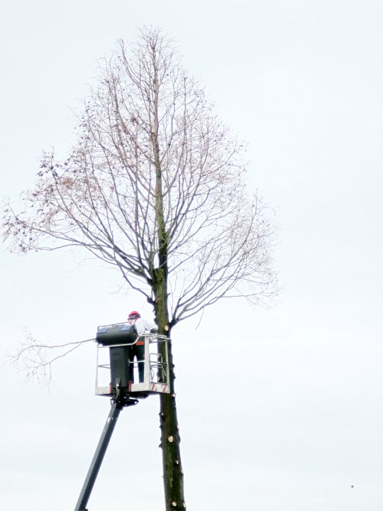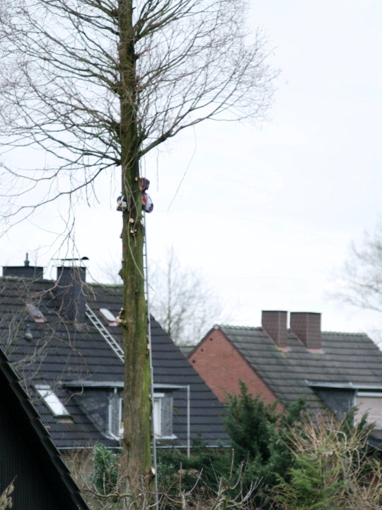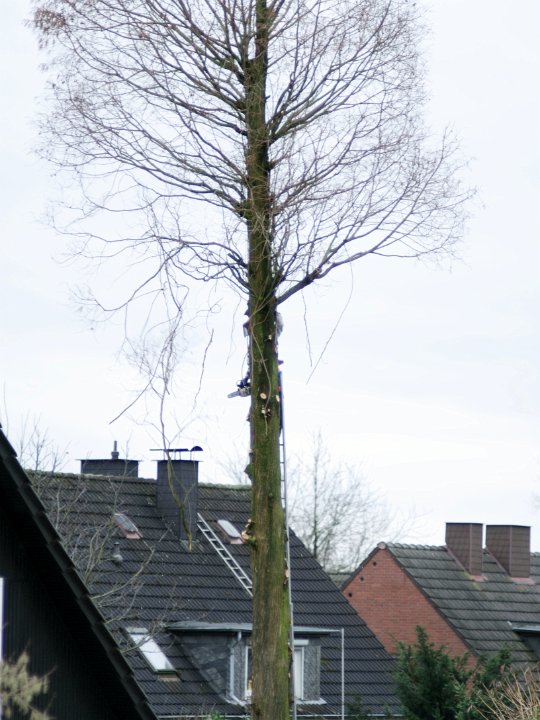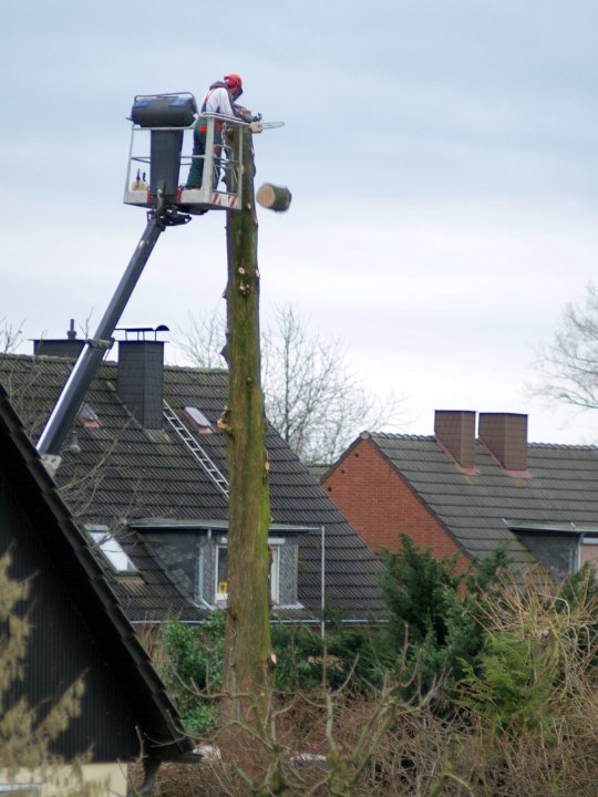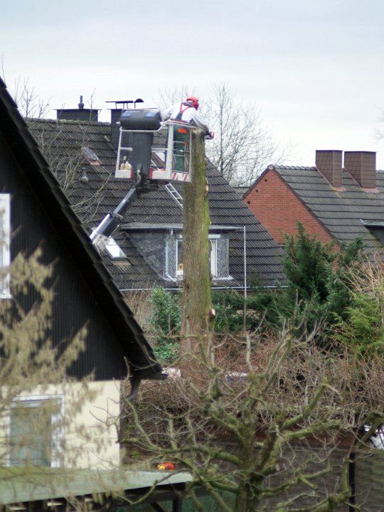13... und als die Leiter nicht mehr hinauflangte ... Und als die Leiter nicht mehr hinauflangte, nahm man den Hubwagen um an die Spitze, an die Krone, die man ihm vor Jahren, wie auf dem Foto ersichtlich, schon einmal abgesägt hatte, zu gelangen.