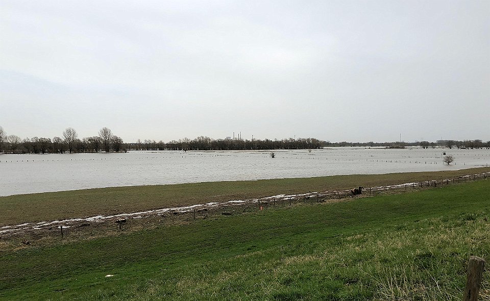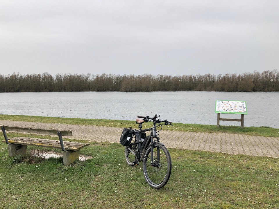 1Rast am kleinen See Rast vor der erschreckenden Erfahrung der nächsten Kilometer auf dem Rheindeich zwischen Rheinberg und Büderich am 6. März 2020 am frühen Vormittag ....