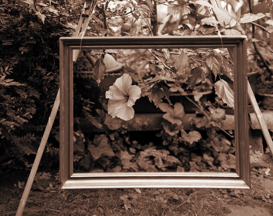 1 Hibiskusblüte hinterm Rahmen Canham DLC 45; Tele-Xenar 5.5/240, Adox CHS100II@64 |