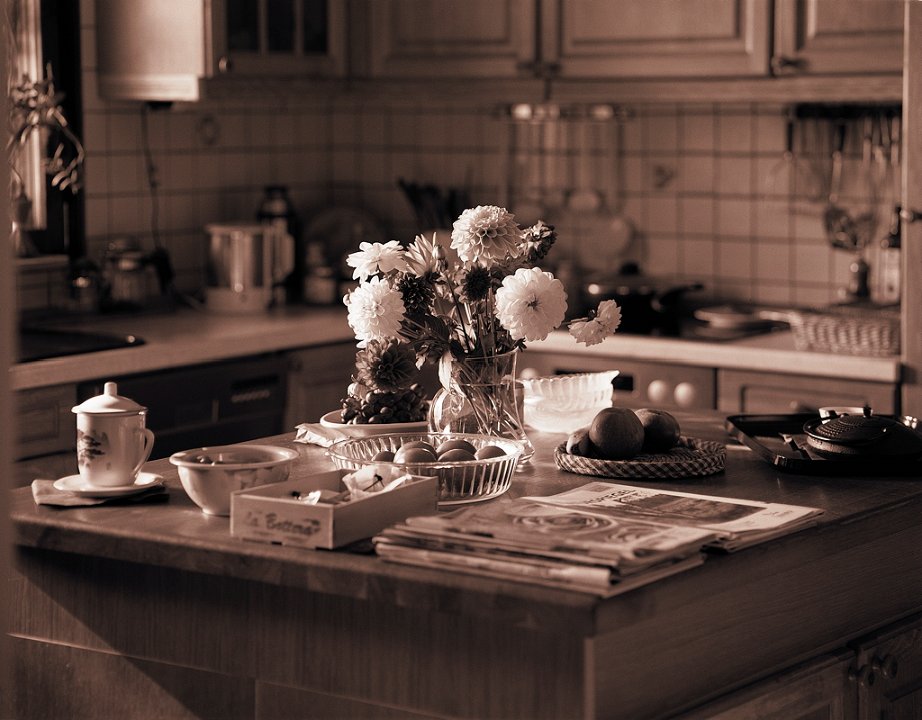 32 Küchenblick mit Blumenstrauß Canham DLC 45; Tele-Xenar 5.5/240, Kodak 320 TXP@250