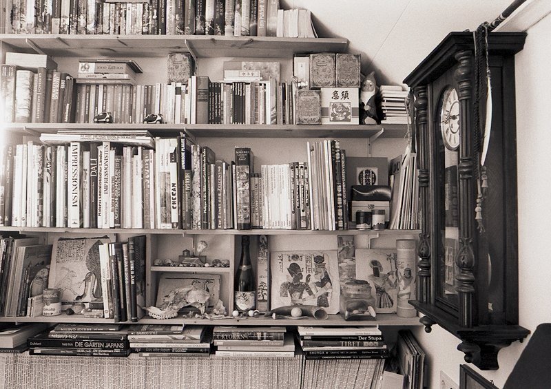 15 Alte Wanduhr und Bücher Yashica FR1, Yashinon 2.8/28 ML, 400TX/250