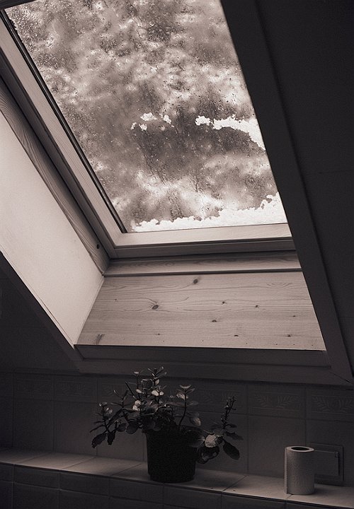 88 Blick durchs Regenfenster Pentax LX, SMC 2.8/24; Bergger Pancro 400