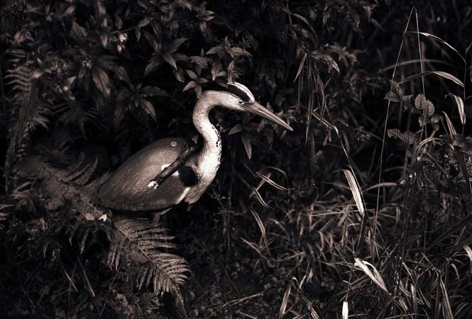 46 Der Farn wächst, der Reiher taucht unter Pentax 645N, 2.4/105(67er), Bergger Pancro 400@400 |