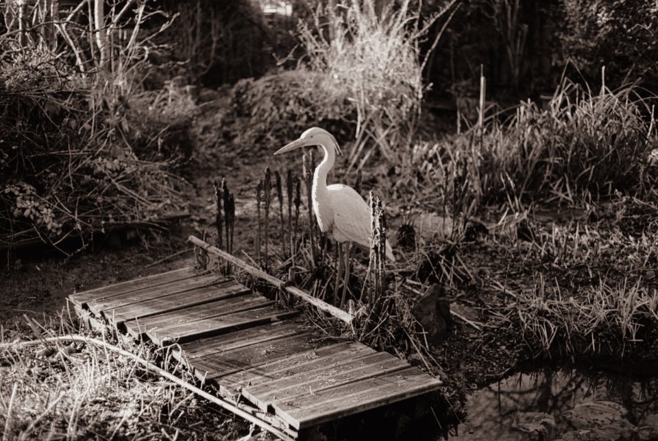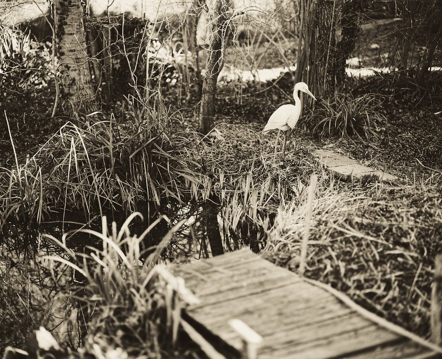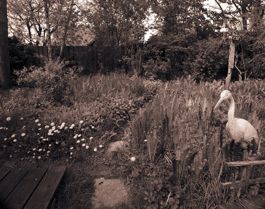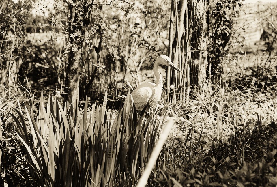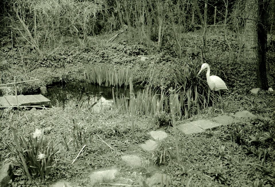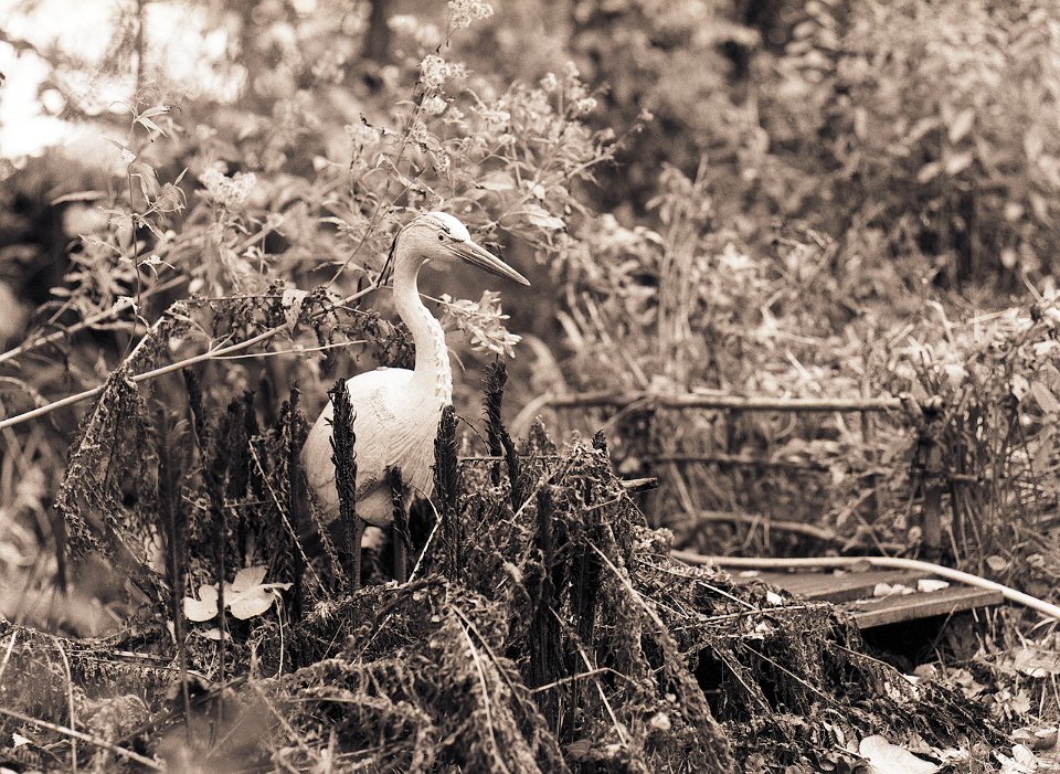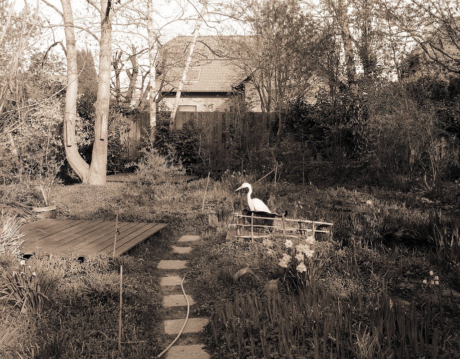 31 Gartenblick mit Reiher Canham DLC 45; Tele-Xenar 5.5/240, Ilford HP5+@400 |