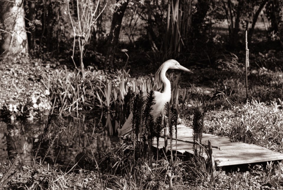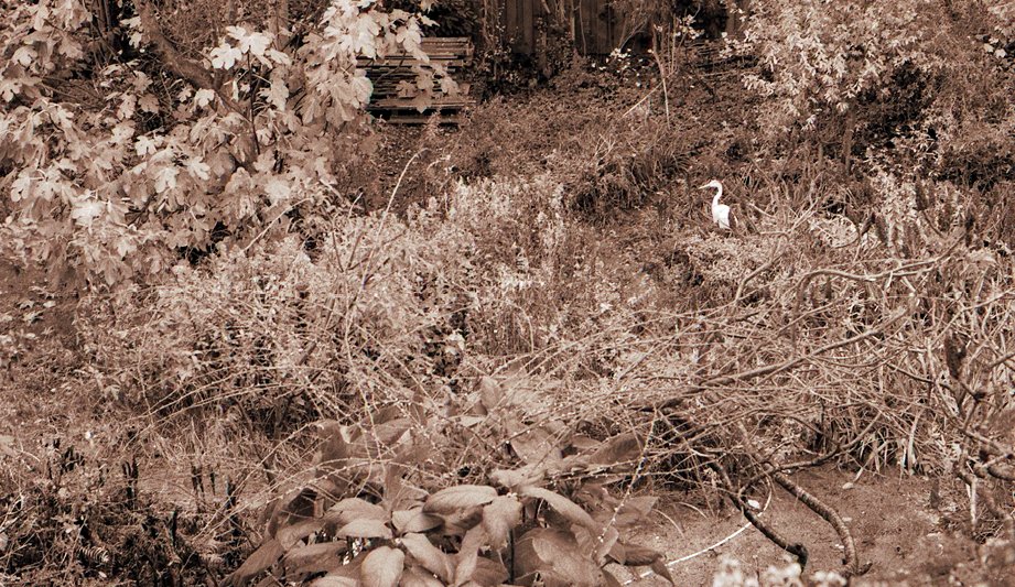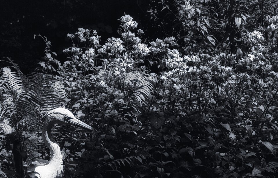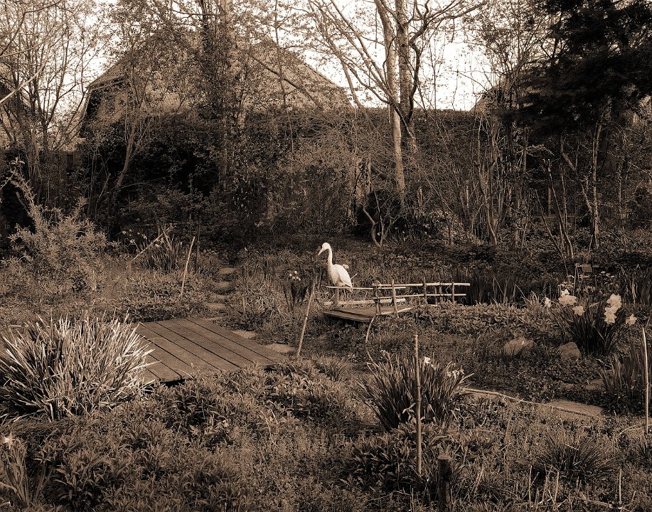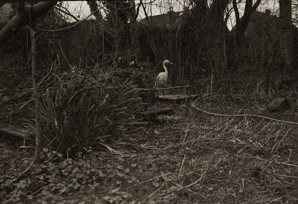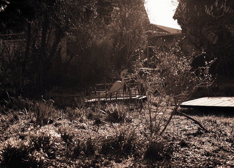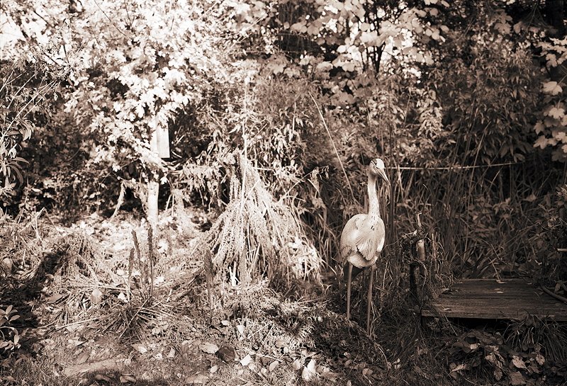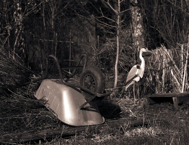 31 Gartenblick mit Reiher Canham DLC 45; Tele-Xenar 5.5/240, Ilford HP5+@400 |