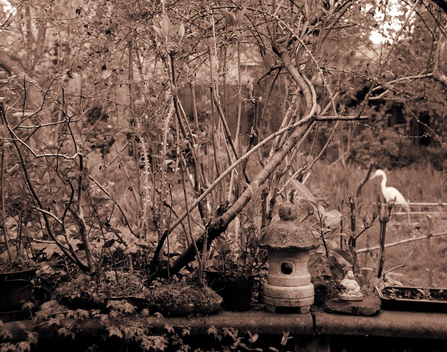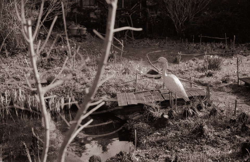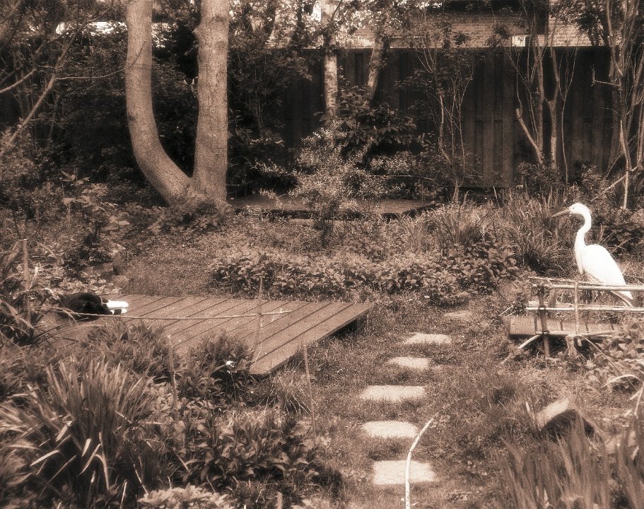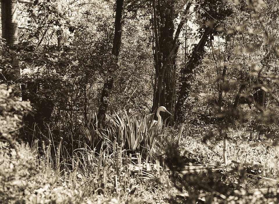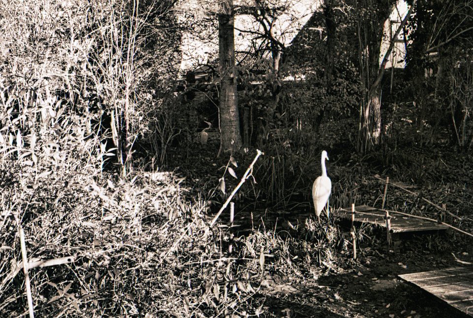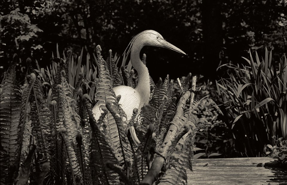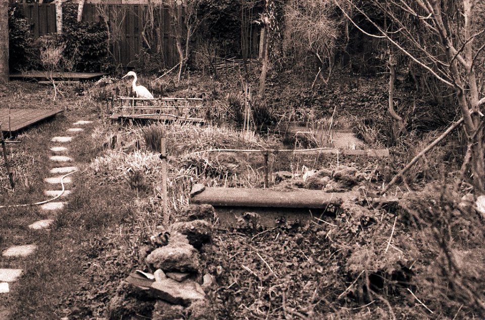 31 Gartenblick mit Reiher Canham DLC 45; Tele-Xenar 5.5/240, Ilford HP5+@400 |