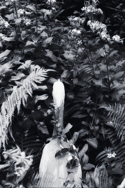 78 Die Jahre vergehen und der Farn wächst ihm über den Kopf Pentax K2, SMC 2.8/24, Gelbfilter, Adox CHS 100 II - 17.05.2021 - |