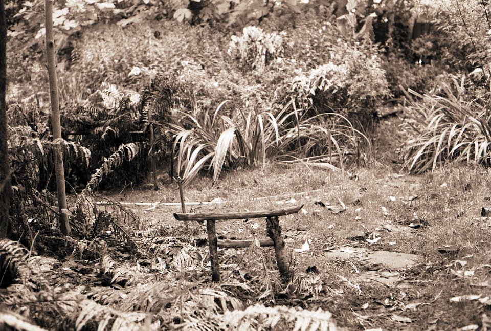 64 Blick aus dem Fenster in den Garten Fuji GW 690 III, HP5+/1600 |