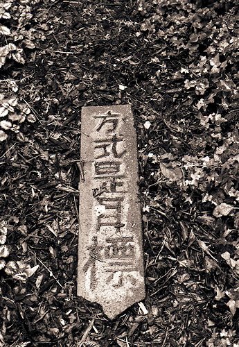 29 Kanji Zeichen auf dem Gartenweg Pentax K2, 1.4/50, 400TX/400 - 08.01.2012 - |