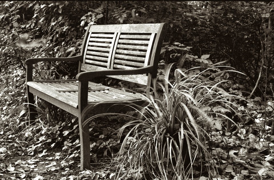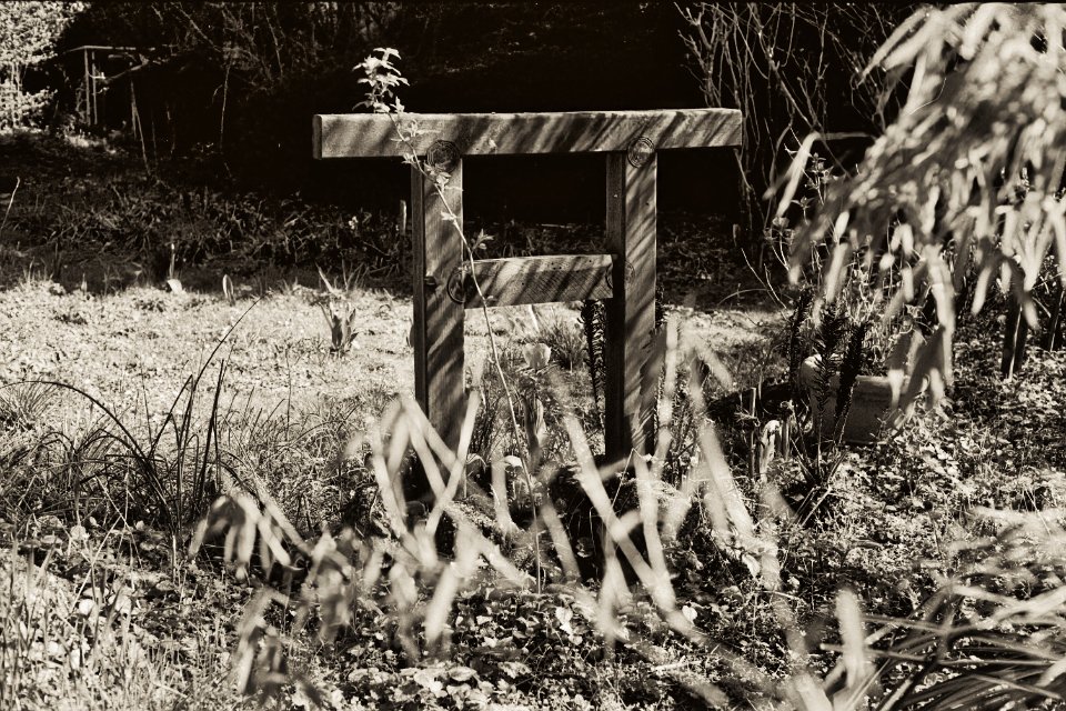 110 Die Gartenbank kommt jetzt in den Keller Yashica FR I, Zeiss Planar 1.4/50, ADOX CHS 100II - 28.10.2023 - |