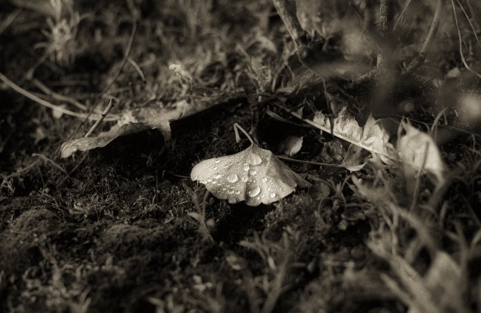 68 Regentropfen auf dem Ginkoblatt Pentax K2, SMC 1.4/50, ADOX CHS 100 II - 25.07.2023 - |