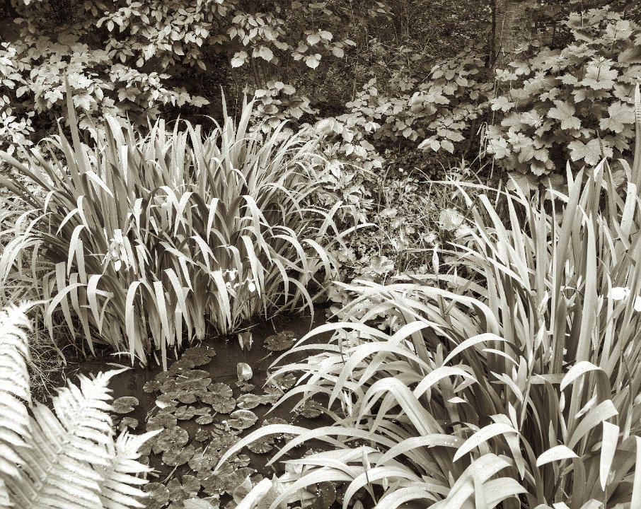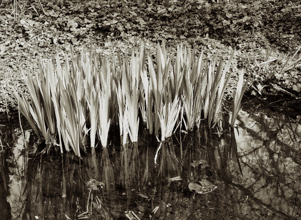 4 Schwertlilien im Gartenteich Pentax 645N, SMC FA 2.8/75, Gelbfilter, Rollei RPX 100 - 25.03.2023 - |