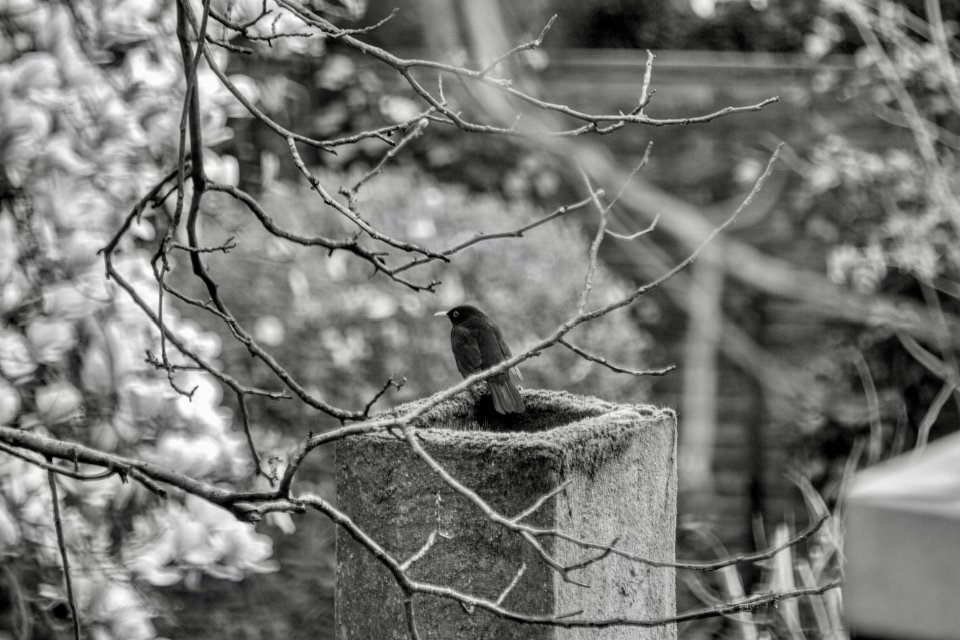 28 Amsel auf totem Kamin PENTAX K-3 Mark III Monochrome , Adapter+SMC 4.0/200 (6x7 Analog) - 24.03.2024 - |