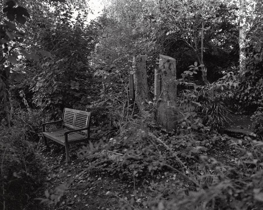 57 Gartenbank und verlorene Erle Fuji GW690 III, Fuji Acros 100II - 30.04.2024 - |