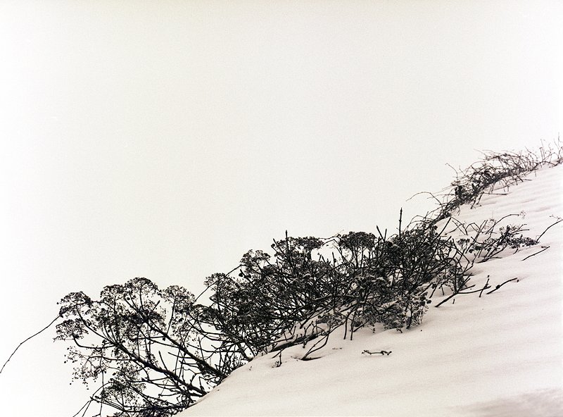 16 Wasserdoststauden im Schnee Fuji GW 690 III; Fuji 100 Acros - Februar 2003 - |
