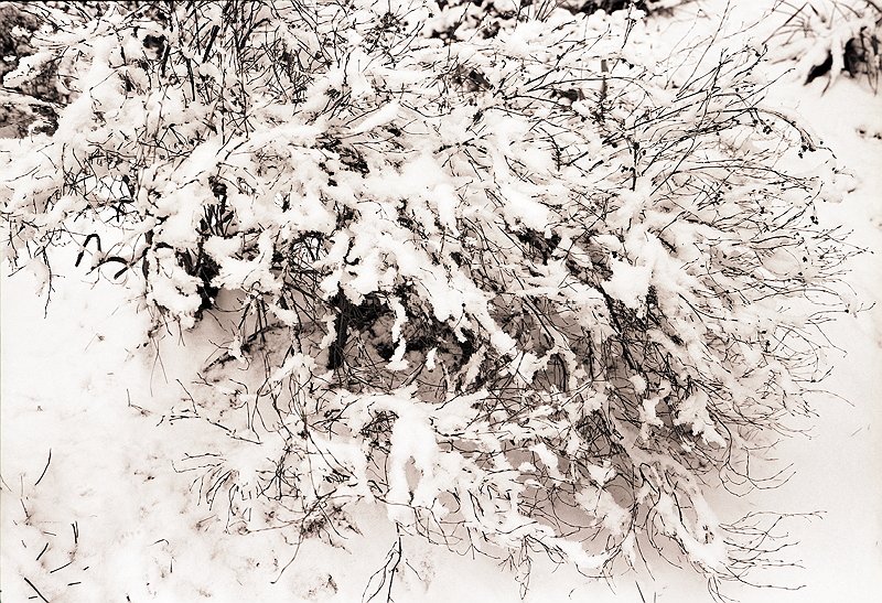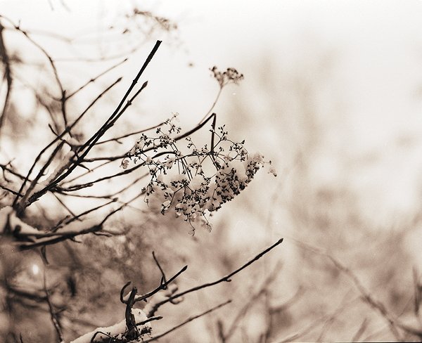 25 Hortensienblüte im Schnee Pentax 67II; 2.4/105; Efke R100 |