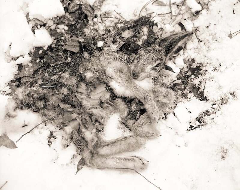 24 Hasentod im Winter Pentax 67II, 2.4/105, Gelbfilter, 400TX/400 |