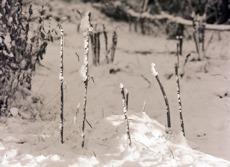 32 Schnee im Vorgarten Yashica FR1, Planar 1.4/50; Agfa APX 100/125 |