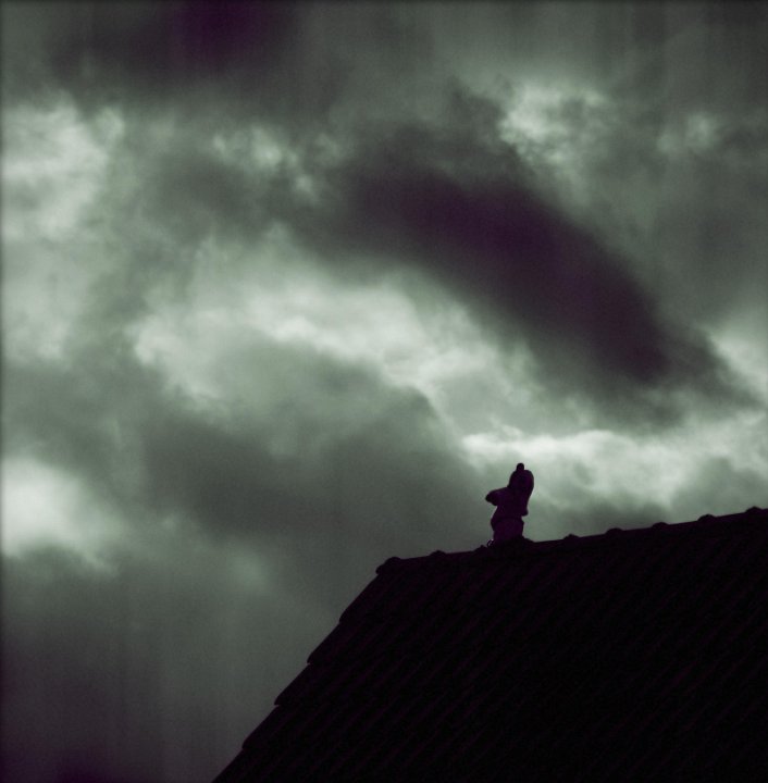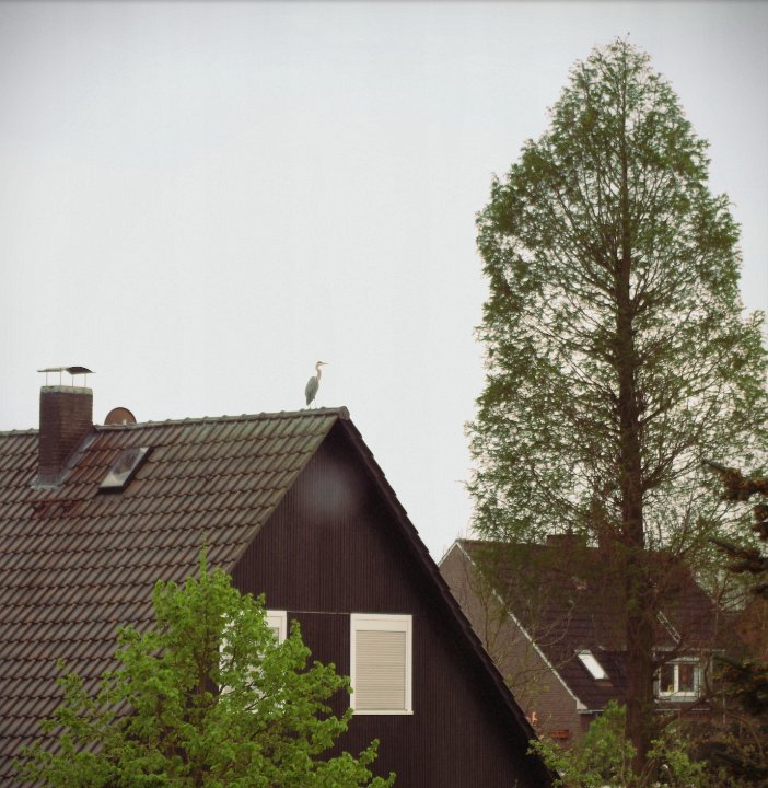 43 Frühling; - der Reiher auf dem Dach |