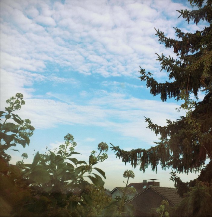 11 Fensterblick; Blauer Himmel mit Wolken |