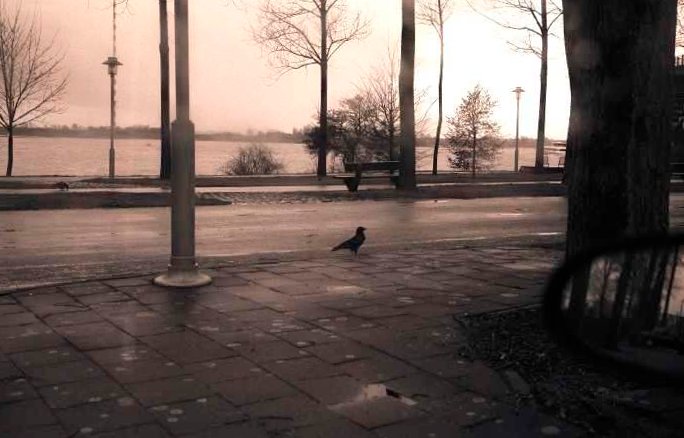 2 Krähen im Regen vor meinem Autofenster Fuji GW 690 III; Agfa APX 400/320 - 7.Dezember 2007 - |