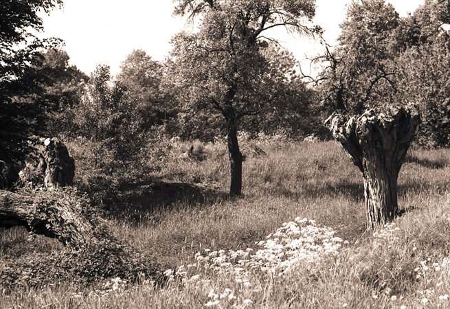 48 Kopfweiden und Obstbäume Yashica FR1; 2.8/135; Agfa APX 100/160 - 8.Mai 2008 - |