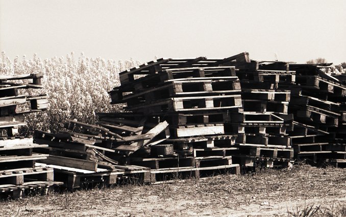 49 Rapsfeld und Paletten Yashica FR1; 2.8/135; Agfa APX 100/160 - 8. Mai 2008 - |