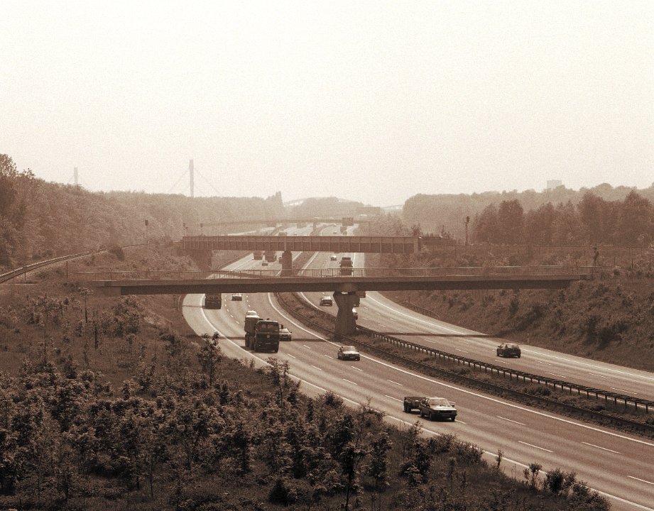 90 Autobahn bei Baerl im Dunst Pentax 6x7, SMC 4.0/200, Delta 400 pro - Mai 1997 - |