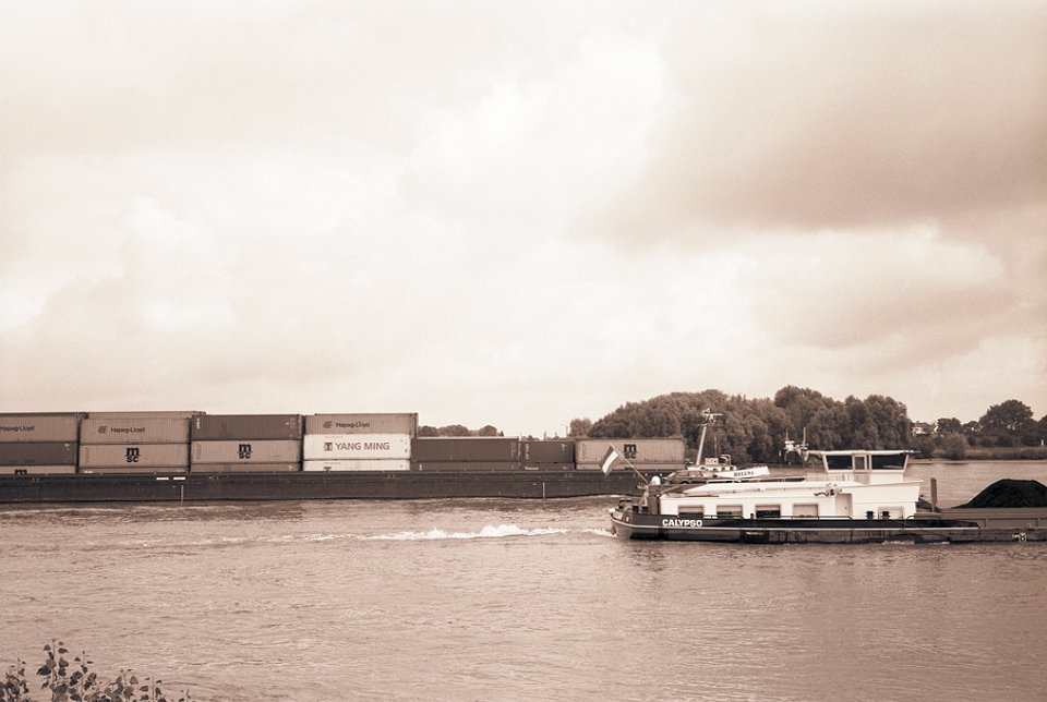 114 Am Fluss oder Rheinschiffer Fuji GW690III, Ilford FP4+ - 18.08.2014 - |