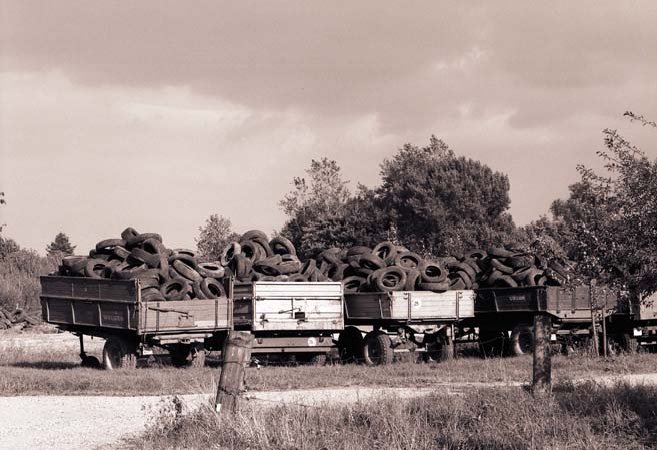3 Landwirtschaftliche Autoreifen Pentax 6x7; 4.=/200; Ilford HP 5 plus/800 ASA - 23.8.2003 -