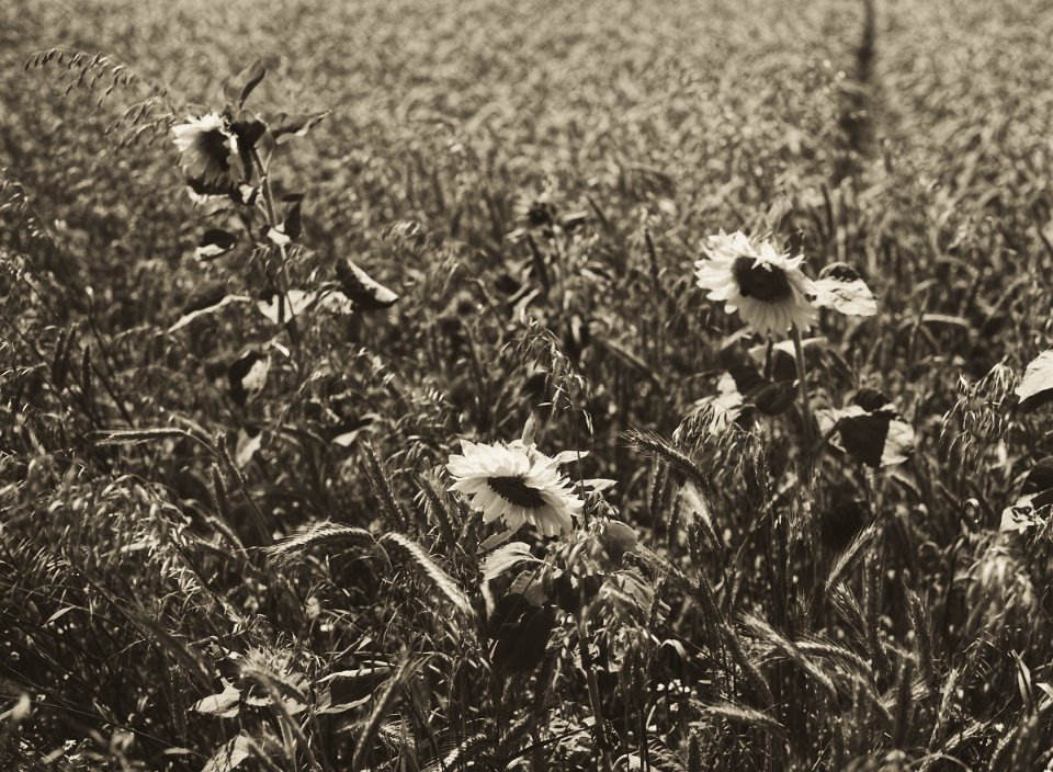77 Sonnenblumen im Gerstenfeld Pentax 645N, 2.8/75, Gelbfilter, Fuji Acros @50