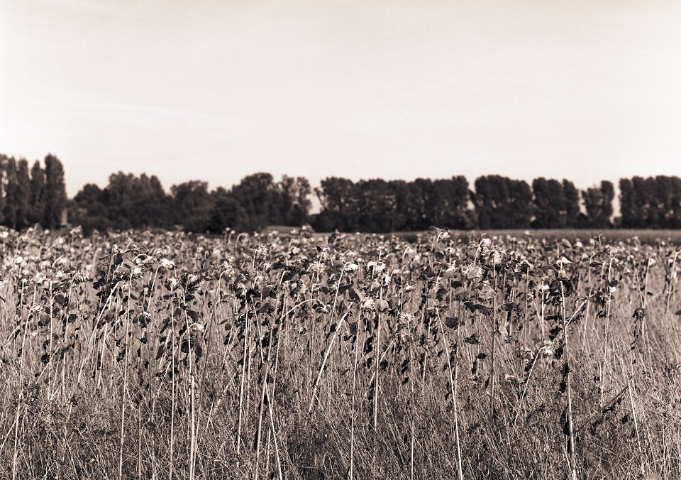 76 Felder und Sonnenblumen Pentax 645N, 2.8/75, Gelbfilter, Fuji Acros @50