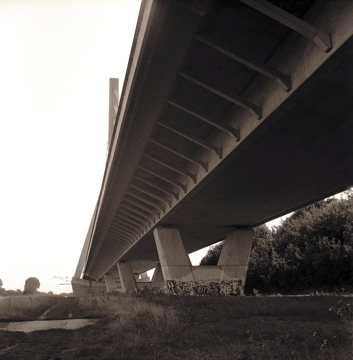 2 Neue Weseler Rheinbrücke Pentax 67II, SMC 2.4/105, Gelbfilter, Bergger Pancro 400 |