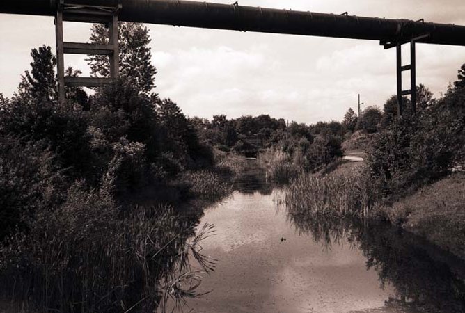 15 Rohre, Stege und Verfall Pentax 645N, 2.8/75, Gelbfilter, FP4+@80 - 18.09.2014 - |