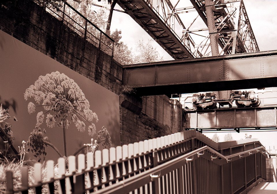 31 Blick in den Landschaftspark Duisburg Nord Pentax LX, Adapter+Zeiss Planar 1.4/50; Ilford HP5plus@250 |